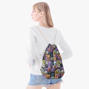 Halloween Drawstring Backpack: Spooky Pumpkin Skull Design