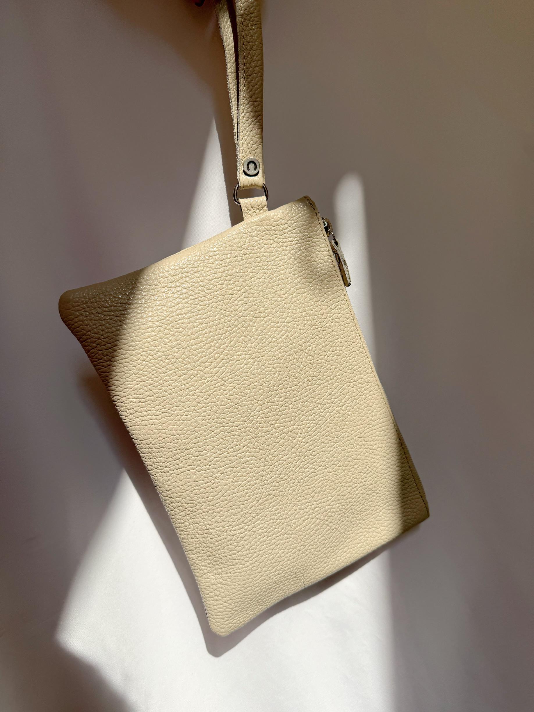 Beige Leather Clutch Bag Minimalist Wristlet Purse Women
