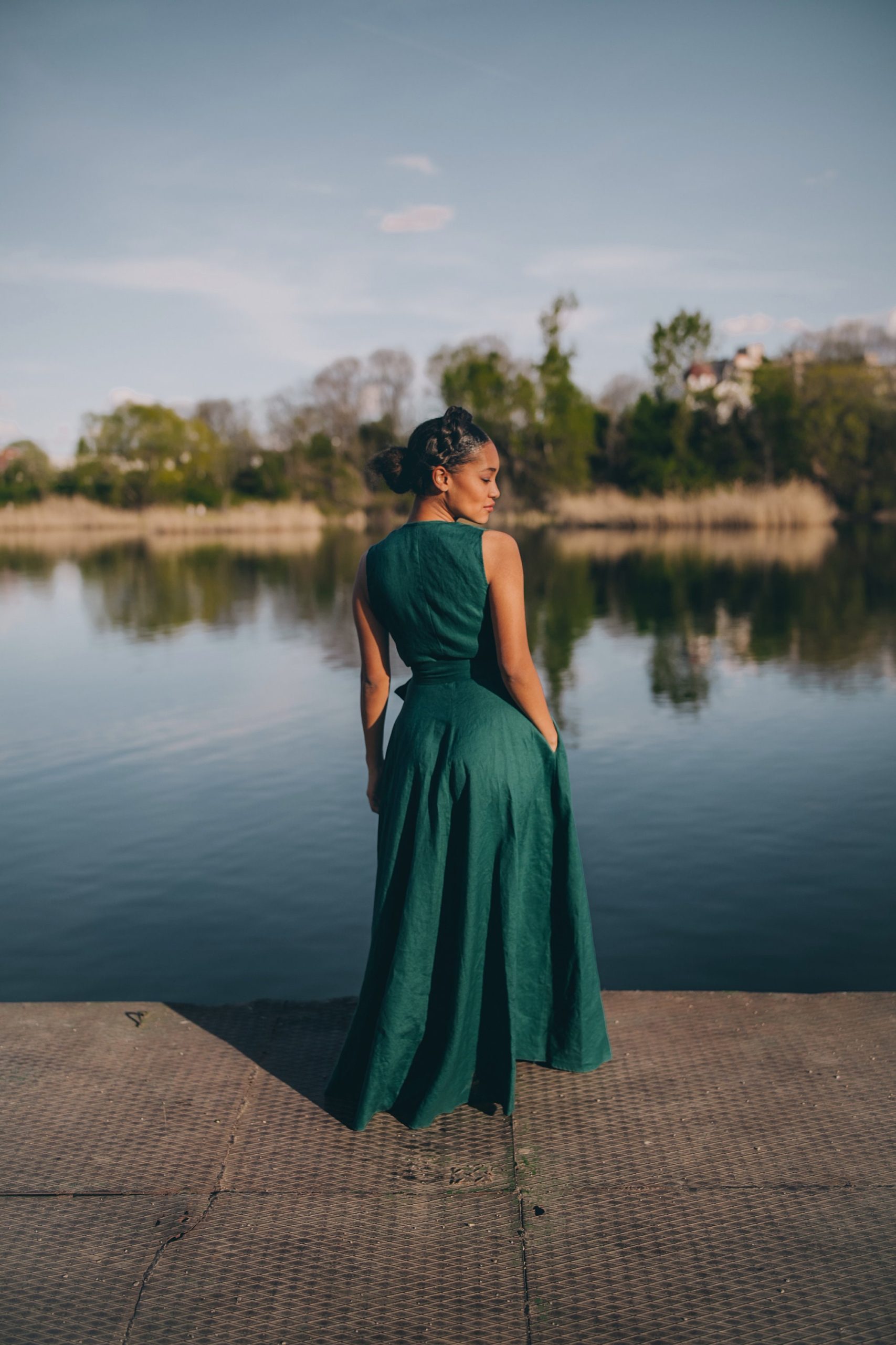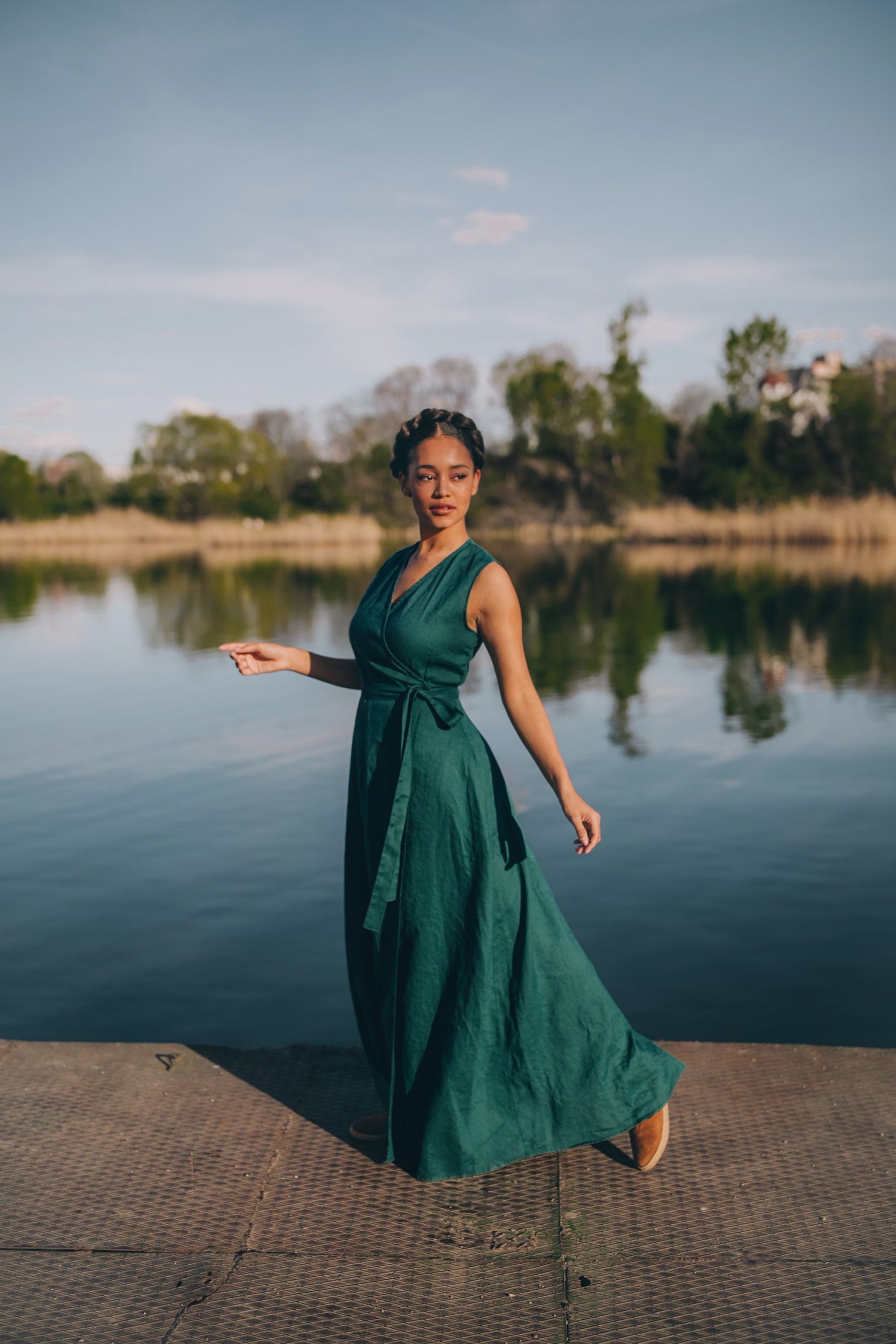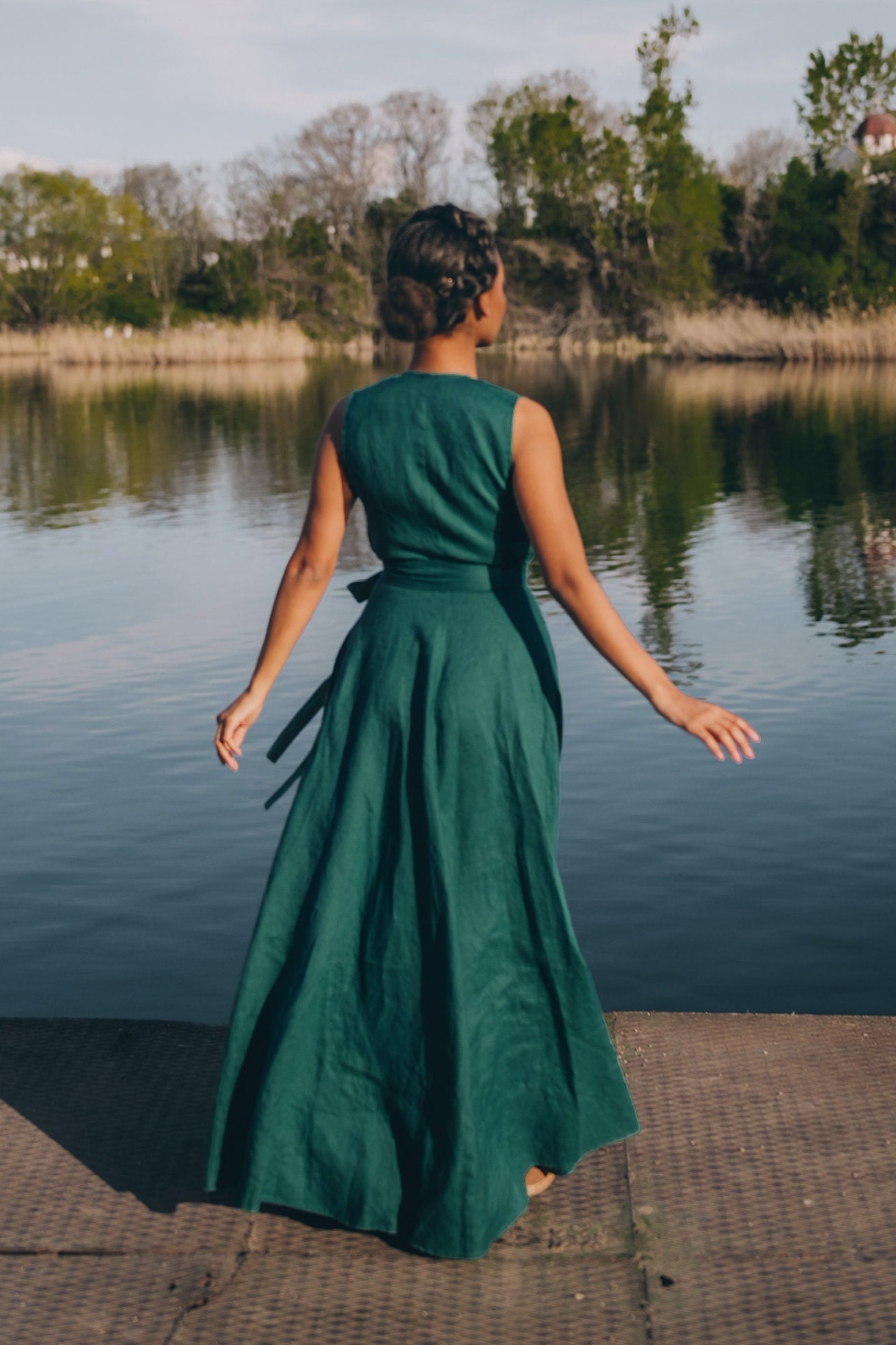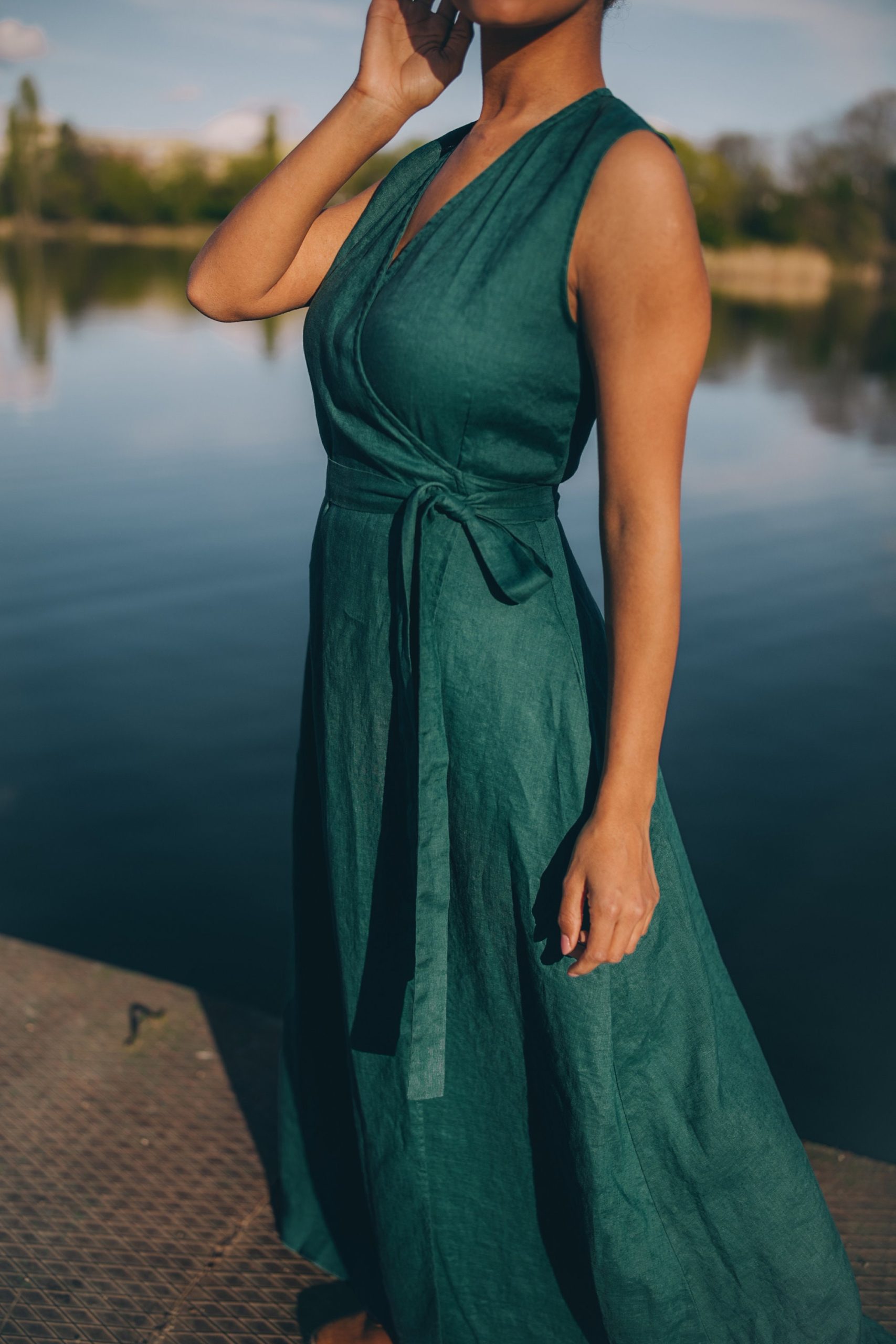Be the first to review “Sleeveless Linen Maxi Wrap Dress Emerald Green Plus”
